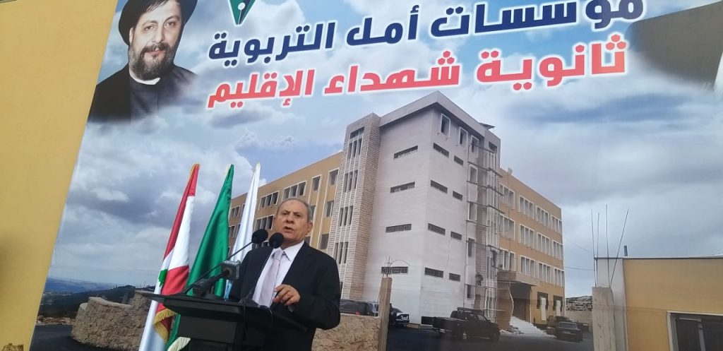 منوها بالتضحيات التي قدمتها منطقة اقليم التفاح من اجل وحدة لبنان والتي تستحق منا ان نزرع في رحابها مؤسسة تربوية تحفظ التضحيات وتخرج الاجيال على نهج وفكر الامام القائد السيد موسى الصدر .