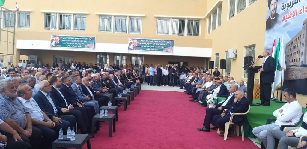 رعى رئيس مجلس النواب الاستاذ نبيه بري ممثلا بعضو كتلة التنمية والتحرير النيابية النائب الدكتور حميد الاحتفال الذي نظمته مؤسسات أمل التربوية في بلدة عين قانا في اقليم التفاح بمناسبة افتتاح ثانوية شهداء الاقليم التابعة لمؤسسات امل التربوية الاحتفال حضره اضافة الى النائب ايوب حميد عضو هيئة الرئاسة في حركة أمل خليل حمدان النائبان ناصر جابر و هاني قبيسي و أعضاء من الهيئة التنفيذية و المكتب السياسي ، المسؤول التنظيمي لحركة أمل في اقليم الجنوب الدكتور نضال حطيط وعدد من اعضاء قيادة الاقليم والمجلس الاستشاري في الحركة ، مدير عام مؤسسات أمل التربوية الدكتور بلال زين الدين ، المستشار الإعلامي للرئيس نبيه بري علي حمدان ، فعاليات سياسية و امنية و دينية و تربوية ، وبلدية واختيارية وافراد من الهيئتين الادارية و التعليمية في المؤسسات .