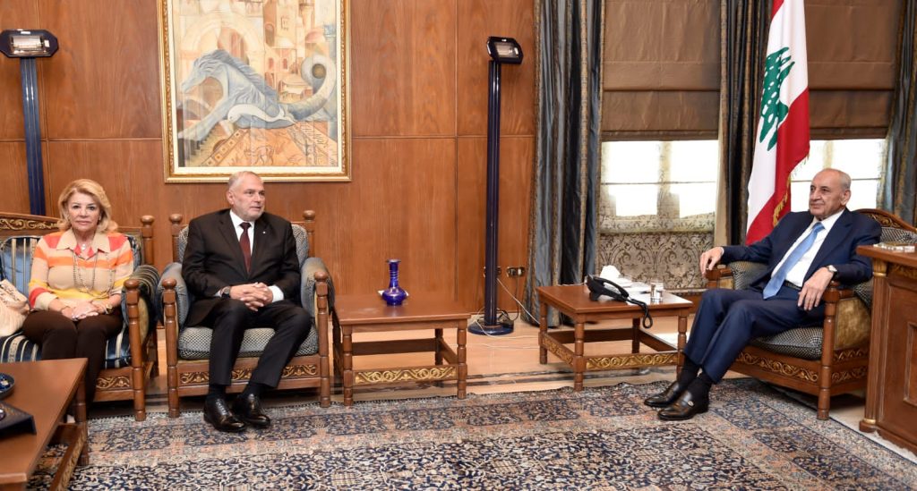 وبعد الظهر استقبل الرئيس بري رئيس الصليب الأحمر اللبناني أنطوان الزغبي بحضور رئيسة قسم الخدمات الطبية والإجتماعية في الصليب الاحمر السيدة أمينة فواز