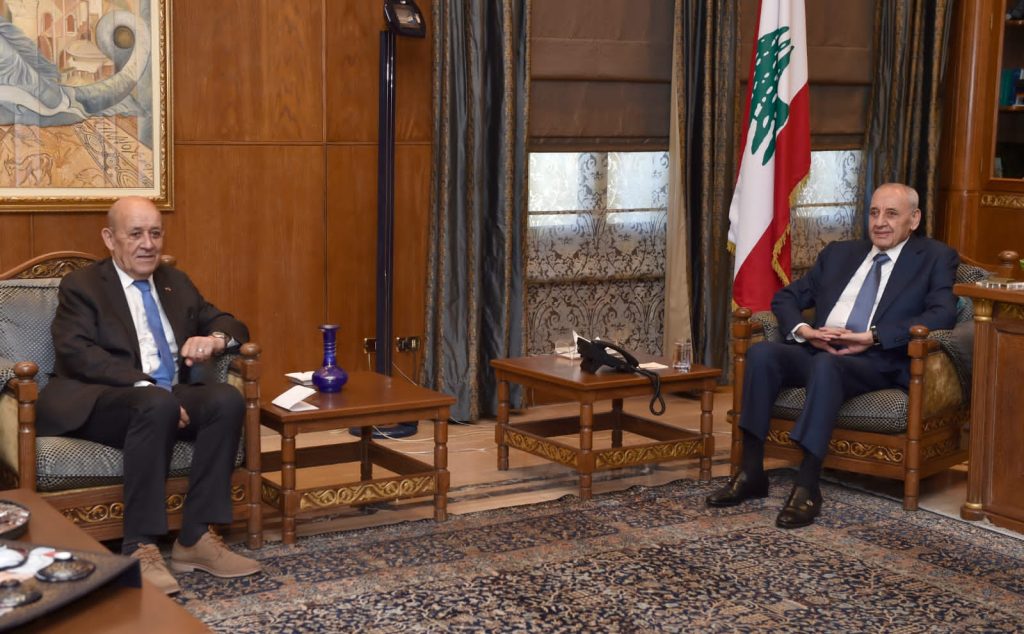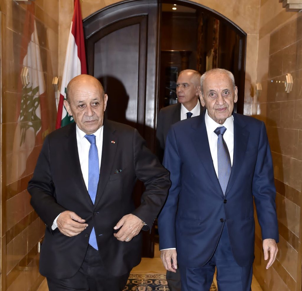 استقبل دولة رئيس مجلس النواب الاستاذ نبيه بري في مقر الرئاسة الثانية في عين التينة الموفد الرئاسي الفرنسي جان إيف لودريان والوفد المرافق بحضور السفير الفرنسي لدى لبنان هيرفيه غارو حيث جرى عرض لنتائج اللقاءات التي اجراها لودريان مع سائر الاطراف ، اللقاء استمر لساعة غادر بعدها لودريان دون الادلاء بتصريح .
