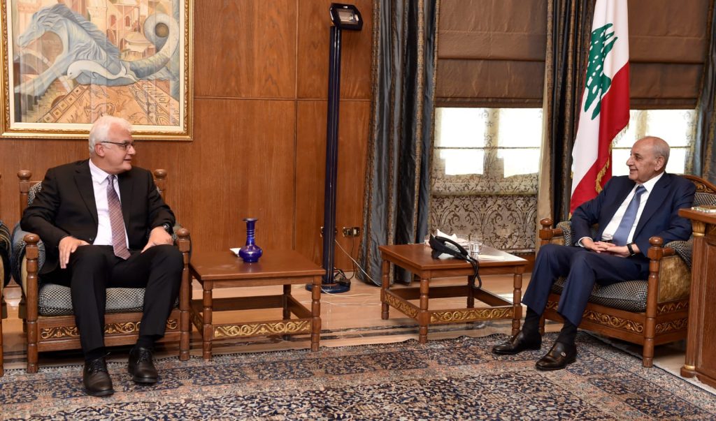 استقبل رئيس مجلس النواب الاستاذ نبيه بري النائب الاول لرئيس مجلس النواب الاردني الدكتور احمد الخلايلة على رأس وفد النيابي ضم مساعد رئيس مجلس النواب ذياب المساعيد ، والنواب ضرار الحراسيس اسماعيل المشاقبة ، خلدون الشويات ، ايمن المدانات ، سليمان القلاب ، عبد السلام الخضير ، وفادي العدوان ورئيس قسم التخطيط والاداء السياسي في المجلس هايل الشنيكات ، رئيس قسم المراسم في المجلس أحمد الوزان ومدير مكتب النائب الاول لرئيس مجلس نواب عمر الغويرين حيث جرى عرض للاوضاع العامة في لبنان والمنطقة وسبل التعاون التشريعي بين برلماني البلدين والتنسيق بينهما في المنتديات البرلمانية الاقليمية والدولية .