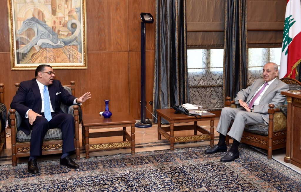 استقبل رئيس مجلس النواب الاستاذ نبيه بري في مقر الرئاسة الثانية في عين التينة السفير المصري ياسر علوي في زيارة وداعية بمناسبة انتهاء مهامه الدبلوماسية كسفير لبلاده لدى لبنان الرئيس بري قدم للسفير علوي درع المجلس النيابي تقديريا لجهوده .