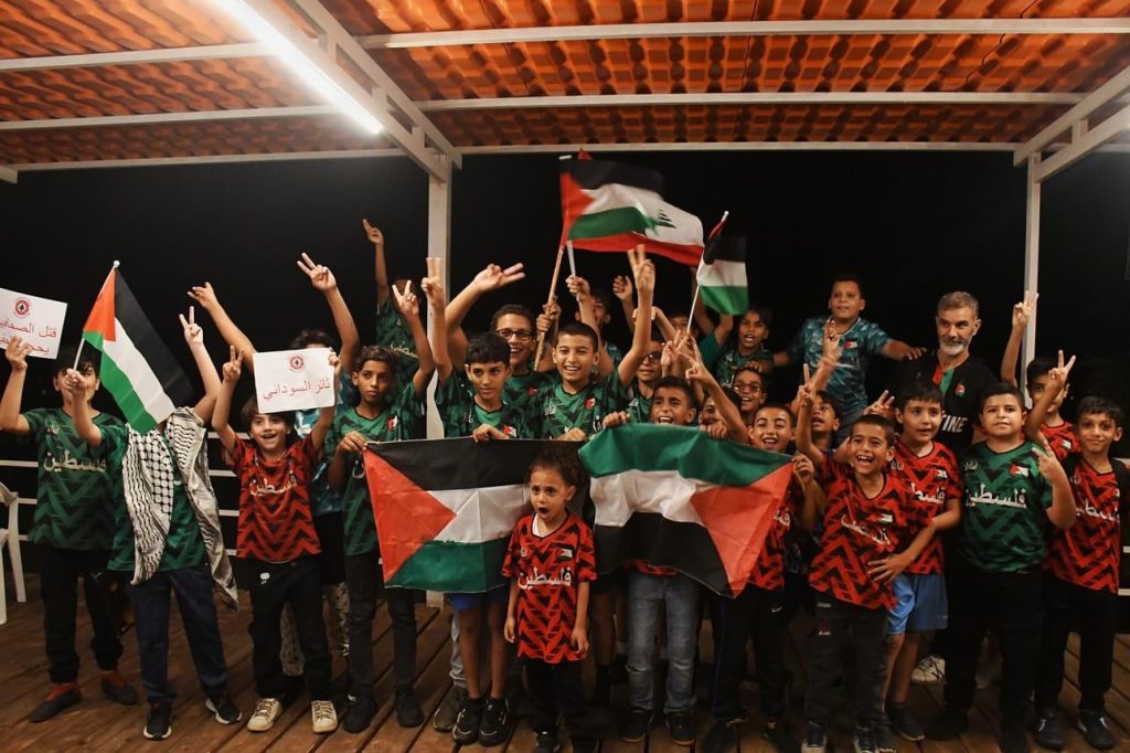 واخيرا أطلقت منطادات ضوئية وبالونات بألوان العلم الفلسطيني إلى غزة.