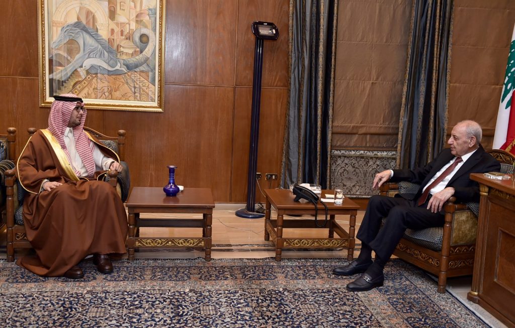 استقبل دولة رئيس مجلس النواب الأستاذ نبيه بري في مقر الرئاسة الثانية في عين التينة السفير السعودي في لبنان وليد البخاري حيث جرى عرض للأوضاع العامة وآخر المستجدات السياسية والعلاقات الثنائية بين البلدين .
