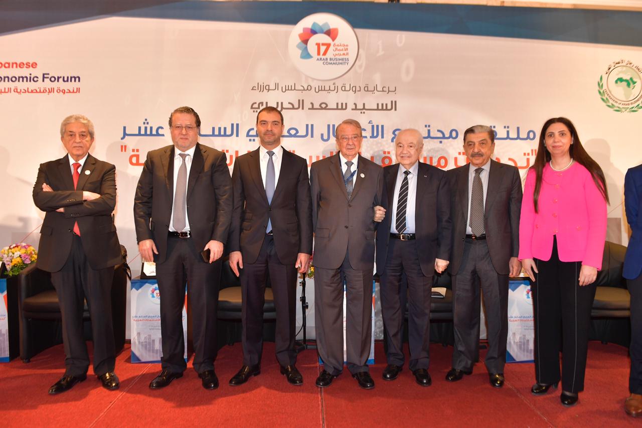 انطلقت في العاصمة اللبنانية -بيروت، فعاليات الملتقى السابع عشر لمجتمع الأعمال العربي، الذي تنظمه “الندوة الإقتصادية اللبنانية” بالتعاون مع “اتحاد رجال الأعمال العرب” تحت عنوان “تحديات مستقبل الاستثمارات العربية”، وذلك برعاية رئيس مجلس الوزراء سعد الحريري، ممثلاً بوزير الدولة لشؤون الاستثمار والتكنولوجيا عادل أفيوني.حضر جلسة الإفتتاح بالإضافة إلى أفيوني، وزير الإتصالات ورئيس الهيئات الإقتصادية اللبنانية محمد شقير، الوزير الأردني جواد العناني، الوزير الكويتي النائب السابق يوسف الزلزلة، سفير المملكة المغربية محمد كرين، سفير دولة قطر محمد بن حسن جابر الجابر، وممثل الأمين للأمم المتحدة والأمينة التنفيذية للجنة الإقتصادية والإجتماعية لغربي آسيا “الإسكوا” الدكتورة رولا دشتي، رئيس مجموعة طلال أبو غزالة العالمية الدكتور طلال أبو غزالة، رئيس اتحاد رجال الأعمال العرب حمدي الطباع، رئيس الندوة الإقتصادية رفيق زنتوت، ورئيس لجنة الرقابة على المصارف سمير حمود، ونخبة من المسؤولين اللبنانيين والعرب، وأصحاب الإختصاص في القطاعين العام والخاص، ومسؤولين من كبرى الشركات اللبنانية والمؤسسات المالية.