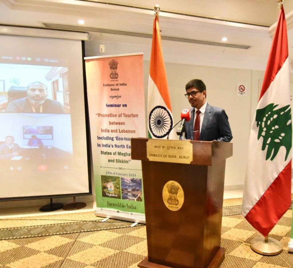 نظمت سفارة الهند في بيروت ندوة حول الترويج للسياحة بين الهند ولبنان، مع التركيز على السياحة البيئية في ولايتي سيكيم وميغالايا شمال شرق البلاد، في 27 شباط 2024. وحضر الندوة عضو البرلمان ورئيس لجنة الصداقة البرلمانية الهندية اللبنانية السيد علي عسيران، المديرة العامة لوزارة السياحة اللبنانية السيدة رانيا عبد الصمد، رئيس أتال (جمعية منظمي الرحلات السياحية ووكلاء السفر في لبنان) السيد جان عبود، رئيس ADLIR (جمعية تطوير العلاقات اللبنانية الهندية) السيد برنارد تنوري، مسؤولون في الغرف التجارية، ورجال أعمال لبنانيون بارزون وكبار منظمي السفر والسياحة في لبنان. كما انضمت إلى الندوة افتراضيًا وزارة السياحة في الحكومة الهندية وإدارات السياحة في ولايتي سيكيم وميغالايا.