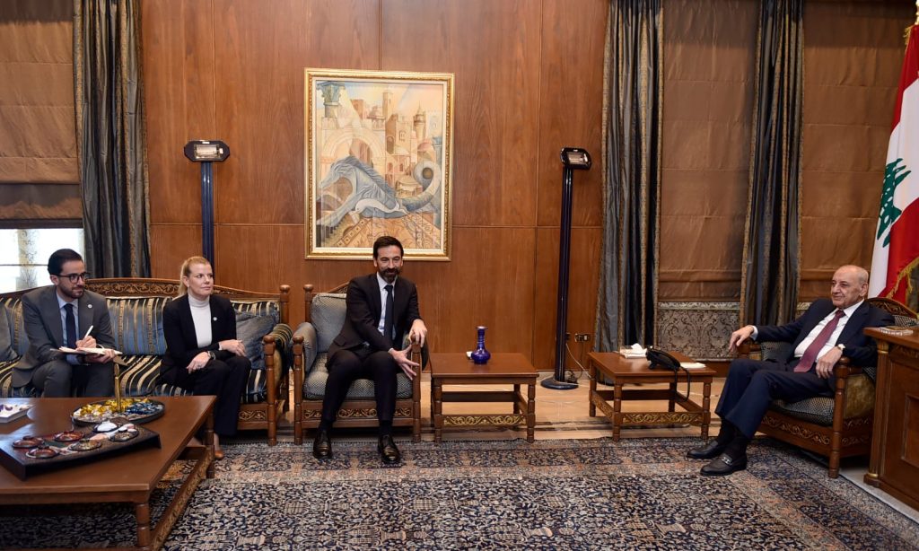 كما عرض الرئيس بري الاوضاع العامة وبرامج عمل الصليب الاحمر الدولي في لبنان والمنطقة في ظل مواصلة اسرائيل لعدوانها على لبنان وقطاع غزة وذلك خلال استقباله المدير الإقليمي لمنطقة الشرق الأدنى والأوسط في اللجنة الدولية للصليب الأحمر فابريزيو كاربوني بحضور رئيسة بعثة اللجنة الدولية للصليب الأحمر في لبنان سيمون كازابيانكا إيشليمان .