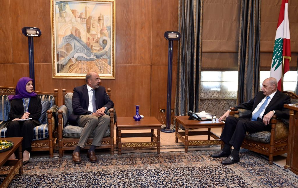 رئيس المجلس إستقبل المنسق المقيم للأمم المتحدة منسق الشؤون الإنسانية في لبنان عمران ريزا حيث جرى عرض للاوضاع العامة لاسيما الوضع الانساني وأزمة النازحين وبرامج عمل الأمم المتحدة حيال هذا الملف .