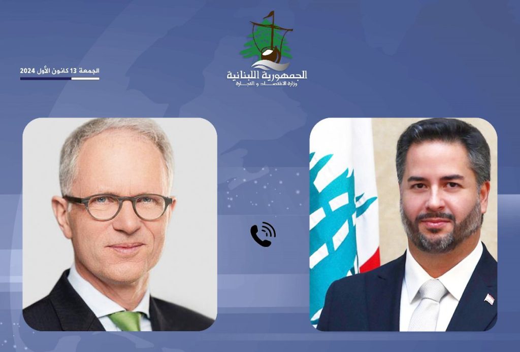 اجرى وزير الاقتصاد والتجارة امين سلام اليوم اتصالاً هاتفياً مثمراً بنظيره الالماني وزير الدولة للشؤون الإقتصادية والعمل المناخي الألماني، أودو فيليب، لمناقشة مواضيع تهم لبنان ودولة المانيا الاتحادية الصديقة.