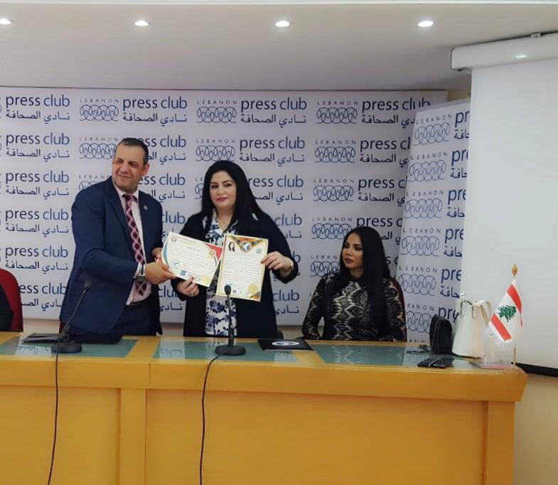 تكليف د.ايمان غصين بمنصب سفير النوايا الحسنة في العالم في نادي الصحافه بيروت