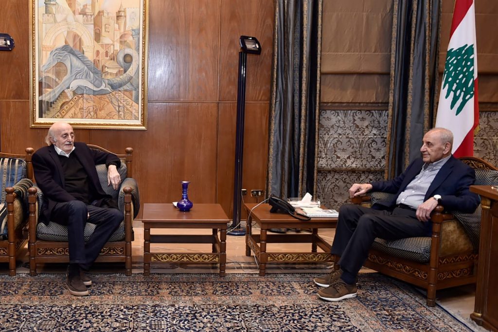 إستقبل رئيس مجلس النواب الأستاذ نبيه بري في مقر الرئاسة الثانية في عين التينة الرئيس السابق للحزب التقدمي الإشتراكي النائب السابق وليد جنبلاط بحضور عضو اللقاء الديمقراطي النائب وائل أبو فاعور حيث جرى عرض لتطورات الأوضاع العامة والمستجدات السياسية والميدانية وبعد اللقاء قال جنبلاط : العلاقة ستستمر بيني وبين الرئيس نبيه بري قوية جداً وستبقى ، أقول هذا لأنه مرت ظروف إنقطاع نتيجة الحرب ونتيجة تشكيل الوزارة .