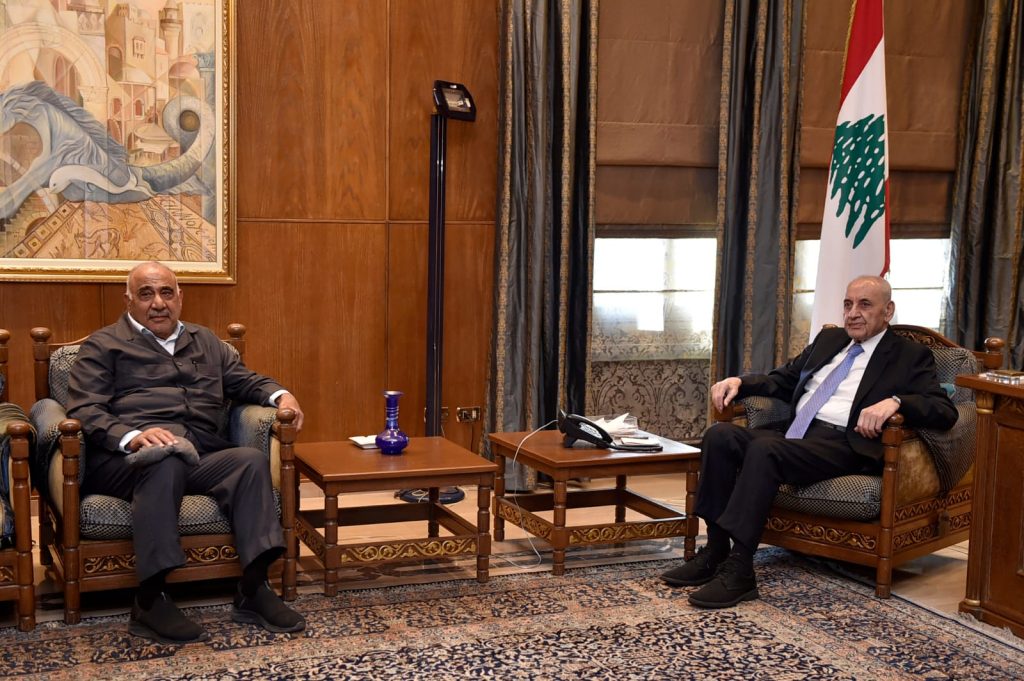 استقبل دولة رئيس مجلس النواب الأستاذ نبيه بري في مقر الرئاسة الثانية في عين التينة رئيس الحكومة العراقية السابق الدكتور عادل عبد المهدي ، حيث جرى عرض للاوضاع العامة في لبنان والمنطقة والمستجدات السياسية والعلاقات الثنائية بين لبنان والعراق .