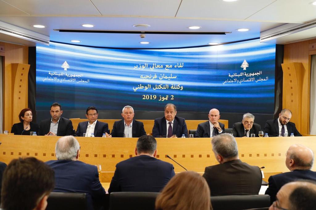 شهد المجلس الاقتصادي والاجتماعي لقاء عمل مع رئيس تيار المردة الوزير سليمان فرنجية يرافقه ووزير الاشغال العامة والنقل يوسف فنيانوس ونواب التكتل الوطني اسطفان الدويهي وفريد الخازن وطوني فرنجية ومصطفى الحسيني . اضافة الى رئيس المجلس الاقتصادي والاجتماعي شارل عربيد .