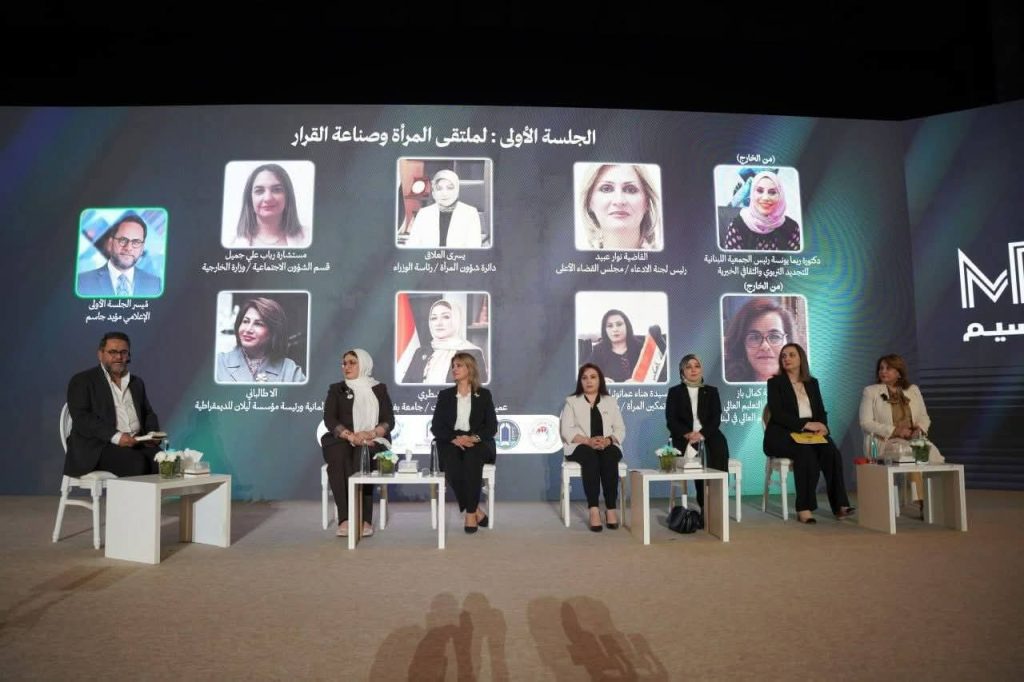 «بوعيها وبصوتها تصنع القرار وتبني الأوطان» بحضور السيدة الأولى حرم السيد رئيس جمهورية العراق السيدة شاناز إبراهيم أحمد ونائب الممثل الخاص للأمين العام للأمم المتحدة في العراق للشؤون السياسية السيد كلاوديو كوردوني إلى جانب عدد كبير من الشخصيات النسوية البارزة في المجالات الدبلوماسية والرسمية والعسكرية، فضلاً عن نخبة من الكوادر التدريسية.