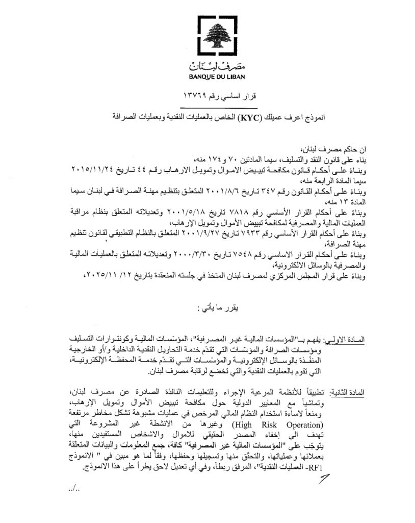 اتخذ مصرف لبنان اليوم الخطوة الأولى ضمن سلسلة من الإجراءات الإحترازية الهادفة إلى تعزيز بيئة الامتثال داخل القطاع المالي.