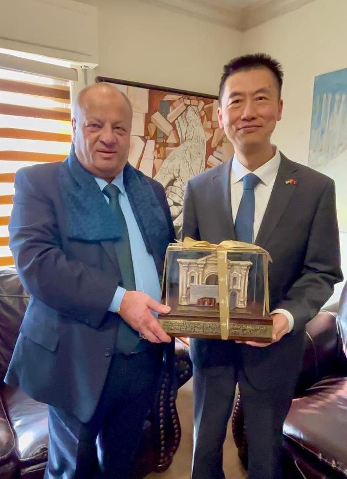استقبل المدير التنفيذي لمهرجان جرش للثقافة والفنون ايمن سماوي ، صباح اليوم الأربعاء في مكتبة السفير الصيني السيد قوه وي لدى المملكة الأردنية الهاشمية ، وجرى خلال اللقاء بحث أوجه التعاون الثقافي بين البلدين الصديقين وسبل دعمه وتعزيزه ، واستحداث مشاريع فكرية جديدة ، وسبل دعمها وتطويرها بما يخدم المصالح المشتركة بين البلدين الصديقين .
