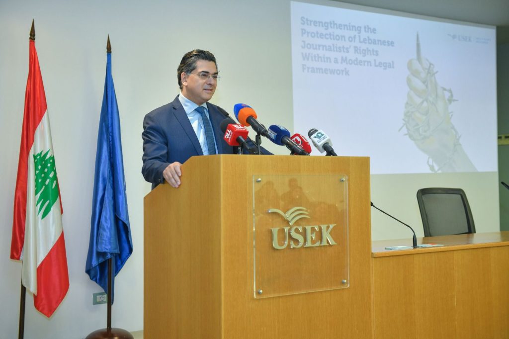 عقدت جامعة الروح القدس – الكسليك طاولة مستديرة بعنوان: “تعزيز حماية حقوق الصحافيين اللبنانيين ضمن إطار قانوني عصري”، برعاية وزير الإعلام المحامي الدكتور بول مرقص وحضوره، في حرم الجامعة في الكسليك.