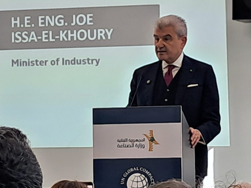 نظمت “الشبكة المحلية للميثاق العالمي للأمم المتحدة” لقاء حول “مواكبة المعايير الدولية ومتطلبات إعداد التقارير لتعزيز جهوزية التصدير”، برعاية وحضور وزير الصناعة جو عيسى الخوري، وتحت عنوان “الصناعة اللبنانية: من أجل مستقبل مستدام” في BDD Beirut Digital District .