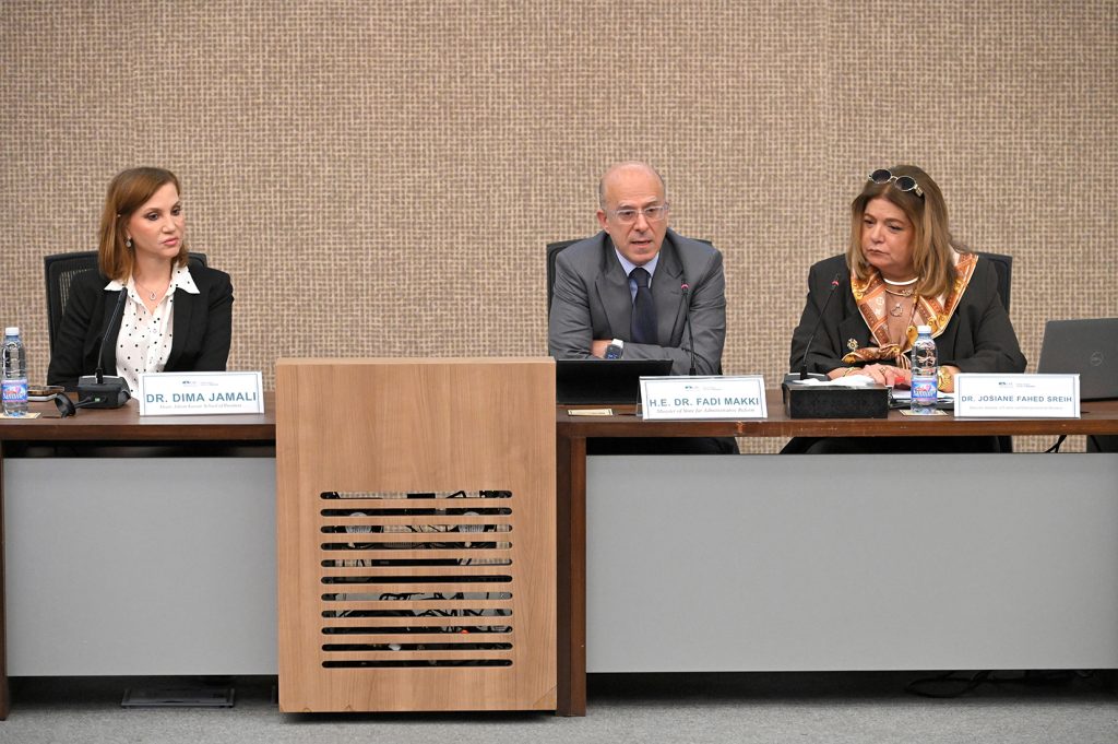 نظمت كلية عدنان القصار لادارة الاعمال في الجامعة اللبنانية الاميركية (LAU) ندوة مميزة في حرم جبيل الجامعي تحت عنوان “النزاعات في الشركات العائلية”، برعاية وحضور وزير الدولة لشؤون التنمية الادارية الدكتور فادي مكي، وعميدة كلية ادارة الاعمال في الجامعة الدكتورة ديما جمالي، ومديرة “معهد المؤسسات العائلية والمبادرة الفردية” في الجامعة الدكتورة جوزيان فهد سريح وشخصيات ووجوه اكاديمية واقتصادية وسياسية معنية بالموضوع، الى جانب طلاب ومهتمين.