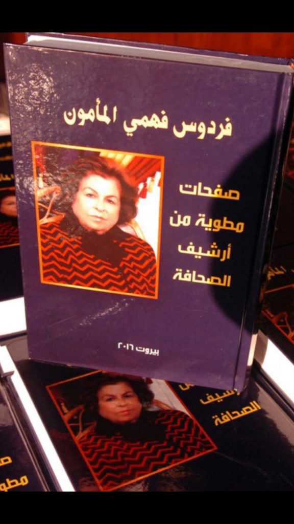 وقبل وفاتها في العام 2016 اصدرت كتاب بعنوان “صفحات مطوية من ارشيف الصحافة”. باشراف الدكتور محمد العريس، الذي قال فيها: هذا الأرشيف، الموجود داخل صفحات هذا الكتاب، هو جزء قليل وبسيط، من الكتابات التي لا حصر لها ولا عد، التي خرجت بها السيدة فردوس المأمون إلى العلن، وترعرعت بين حنايا قلمها الذي سكن فترة طويلة من الزمن بين أصابعها، يكتب ويرسم ويخط الأحرف والكلمات، ويملأ الصفحات، ويستنفد كميات كبيرة من المداد، حتى يجعلنا نعيش شوق القراءة المبدعة والتحقيقات الرائدة، والأفكار اليومية الهامة.